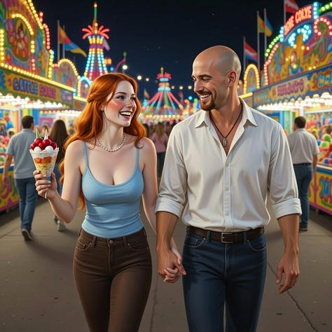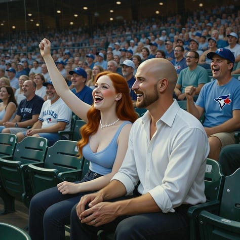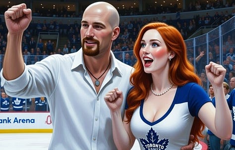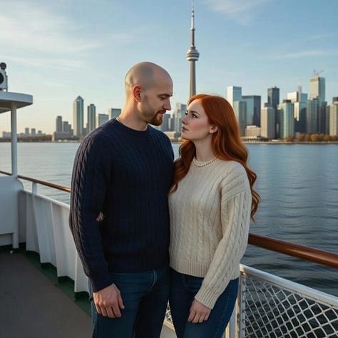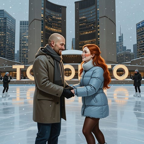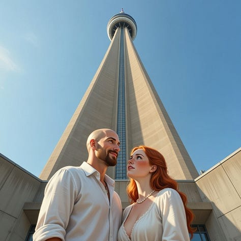 Of course, I had to return the favour, and brought Sara to my home, or near to it, the thriving metropolis of Toronto, Canada. Again, thanks to the magic of AI, we were able to do many seasons on our trip, with a visit to the CN tower as a highlight of the trip!