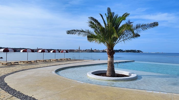 My mom and I went to try out the new public infinity pool in town— the one built right on the beach, with the kind of view that makes you forget where the sea ends and the sky begins.