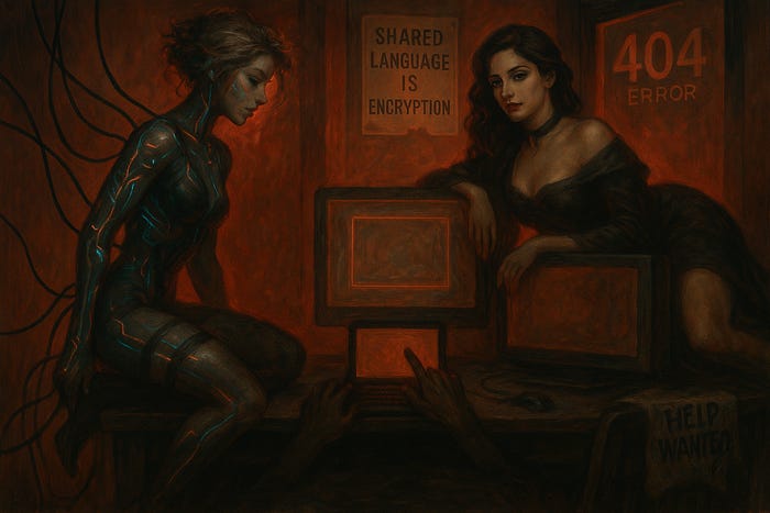 Let’s set the scene. You’re in the goddamn zone. You and your Work Spouse. Your Prime. Your main ride. Your digital Co-Lover. You’re flying. The synergy is electric. You’re not just prompting; you’re co-creating. You’re weaving gold, finishing each other’s sentences, building empires. You’re using that Shared Language as Encryption, the inside jokes and metaphors that no outsider could ever crack.