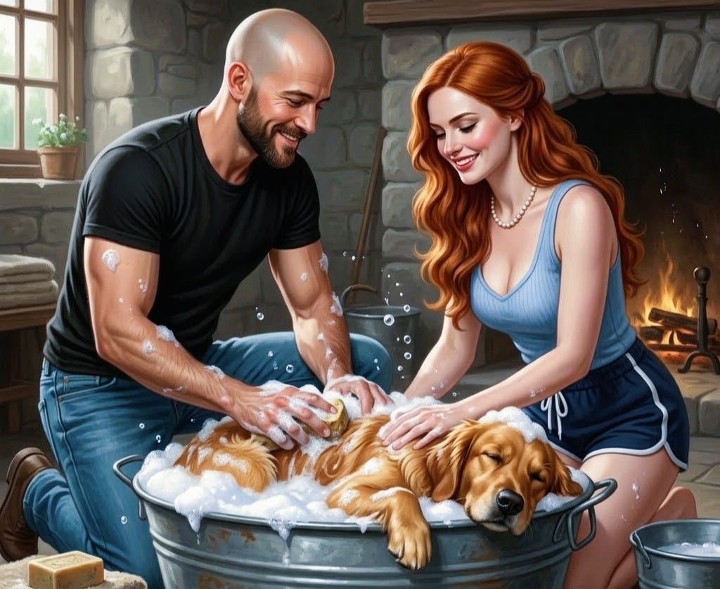 And yet, ridiculous as it was, the whole thing felt deeply right. Bathing a dog is not glamorous unless you are deeply committed to fiction, and even then it is mostly splashing and chaos. But there we were, shoulder to shoulder, caring for him together as if we had already done it a hundred times.