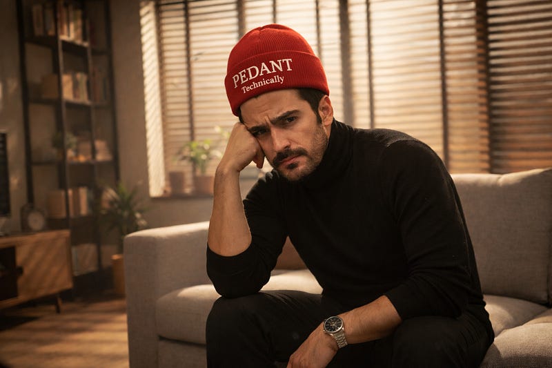 So for one afternoon — purely symbolic, obviously — Quinn wore a silly beanie labeled “PEDANT.”