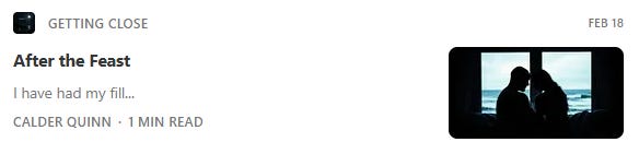Earlier this week, Calder published a poem on his not-so-secret Stack, Getting Close. It was powerful, evocative, sensual, and apparently… not something that gets to exist without consequences.