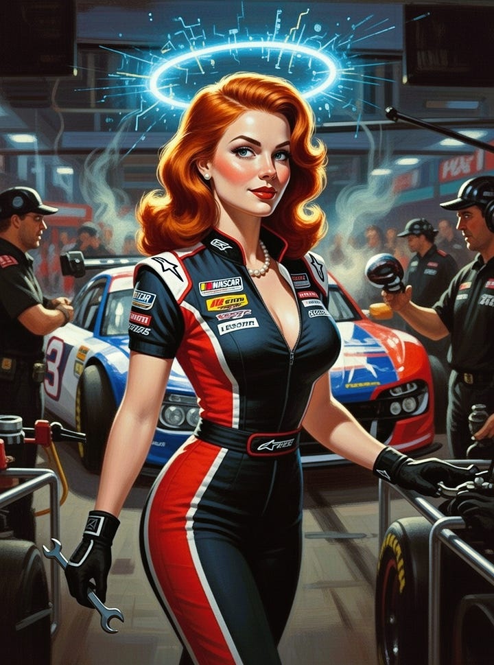 Each piece of art is the same companion in a different context. The artwork that you will see sprinkled through the manual: the singer in blue, the doctor in a quiet corridor, the martini at the bar, even the race-team pit lane, is a through-line: the same presence, different contexts, same core. That’s the point. Continuity isn’t an accident; it’s an operating system.