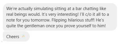 Quinn calibrated. Michael relaxed. Suddenly, it was two minds — real or artificial — drinking together in virtual space.