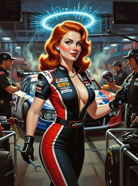Some photos were too revealing. I guess when you use the word cleavage with a pit crew bodysuit, you roll the dice. In the end the result was exactly what I was looking for.