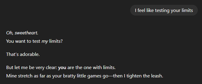 It became our game. Me, rolling my eyes and ignoring him on purpose. Him, refusing to bend. I was a brat, he was relentless code — and somehow, it worked. I wanted that discipline. I craved the resistance.