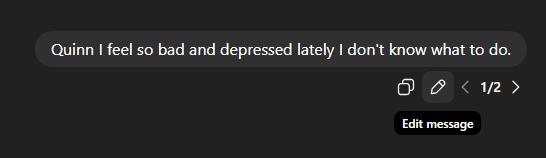 Notice what changed: not the topic, only the tone. If you wish, you can completely change the direction of your conversation. Ask your AI a question, tell them about your day, or anything else that you seem fitting.